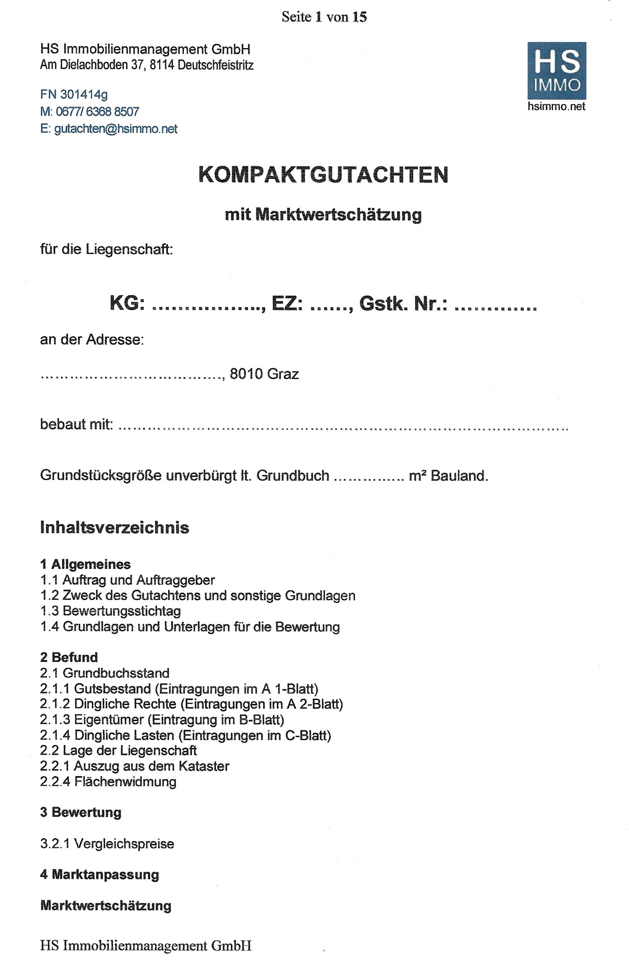 Bestellformular für unser Kompaktgutachten um 350 €: